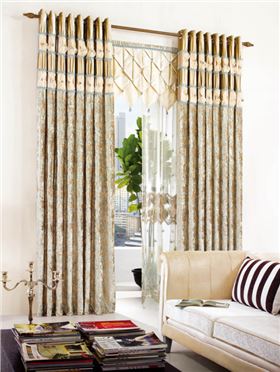 花型、色彩及款式:花型以抽象的花卉圖案為主;色彩濃郁,以深色調(diào)為主。如:紫色、玫紅。平過(guò)簾頭或波浪簾頭款式均可使用。